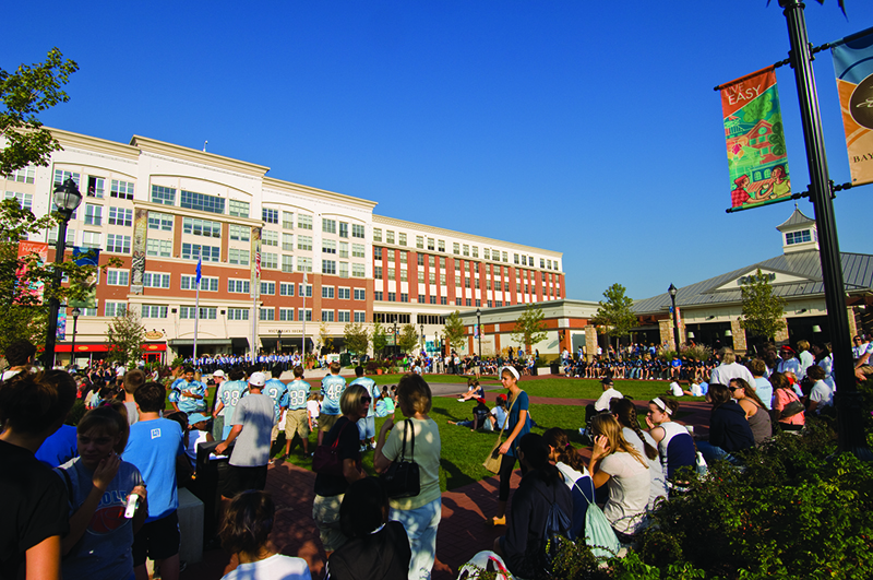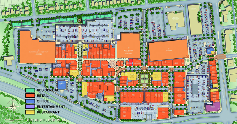 Bayshore Town Center is the redevelopment of a traditional enclosed shopping Mall into a mixed-use open air town center. By partially tearing down and renovating an existing mall as well as expanding it by approximately 500,000 square feet, Bayshore Town Center has become Milwaukee’s premier mixed-use destination. Located in the northern Milwaukee suburb of Glendale, Wisconsin the project integrates retail, dining, office, residential, a health club, a cinema, and residential around a central town square.