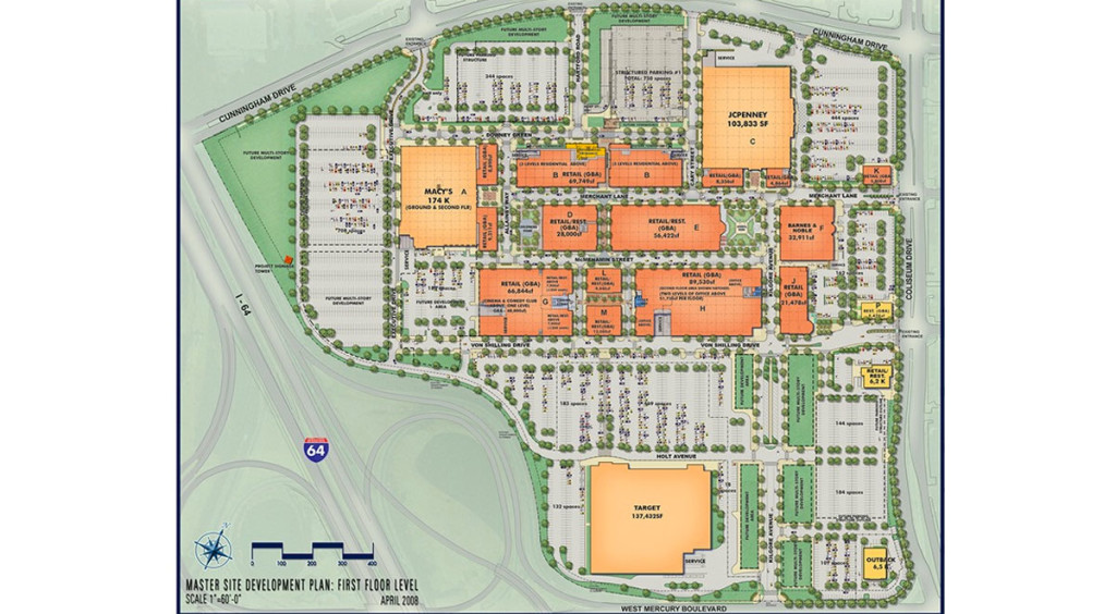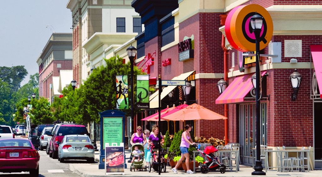 Peninsula Town Center is the redevelopment of a traditional enclosed shopping mall into a dynamic and ambitious open air mixed-use town center development. The development includes a mixture of retail, restaurant, multi-level office, entertainment, and luxury residential living in an open air environment with an energized urban streetscape. A central park serves as the major organizing green space and the primary entertainment venue. A more intimate pocket park will include outdoor dining, a formal rose garden, and a children’s park.